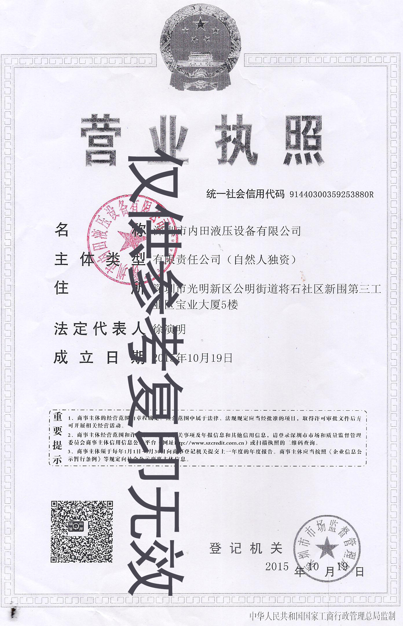 > 內田營業執照