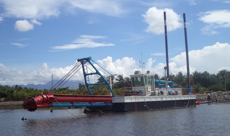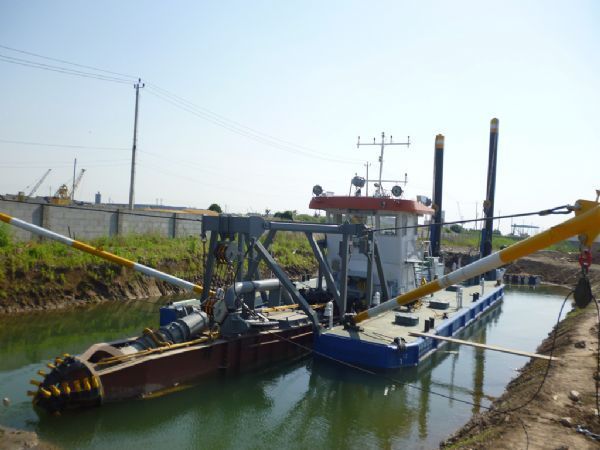 絞吸式抽沙船的工作效率高,而且可以對(duì)中、低硬度的巖層進(jìn)行破壞,從而更適合高難度的河沙提取。但是絞吸式抽沙船的造價(jià)就相對(duì)較高,而且不如挖沙船那樣運(yùn)動(dòng)自如。絞吸式抽沙船依靠駁船的牽引到達(dá)目的地后,必須依靠船錨進(jìn)行固定。但是絞吸式抽沙船大大的增強(qiáng)了抽沙深度,可以可以進(jìn)行河道的清淤,航道的疏通,以及人工島的吹填等大型高難度工作。