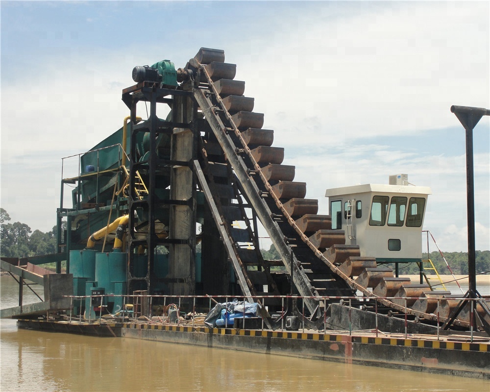 挖斗淘金船是本公司主打產(chǎn)品之一,本設(shè)備是鏈斗式的挖掘機(jī)械,可同時(shí)完成采掘、篩選、清洗、分級(jí)等工藝。,配備動(dòng)力為柴油機(jī)或發(fā)電機(jī)組,能進(jìn)行多沙石料的篩分、沙金洗選等工作。