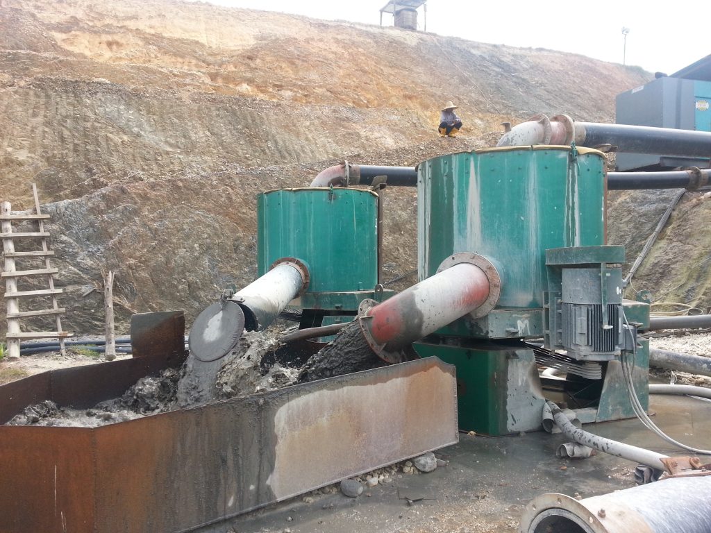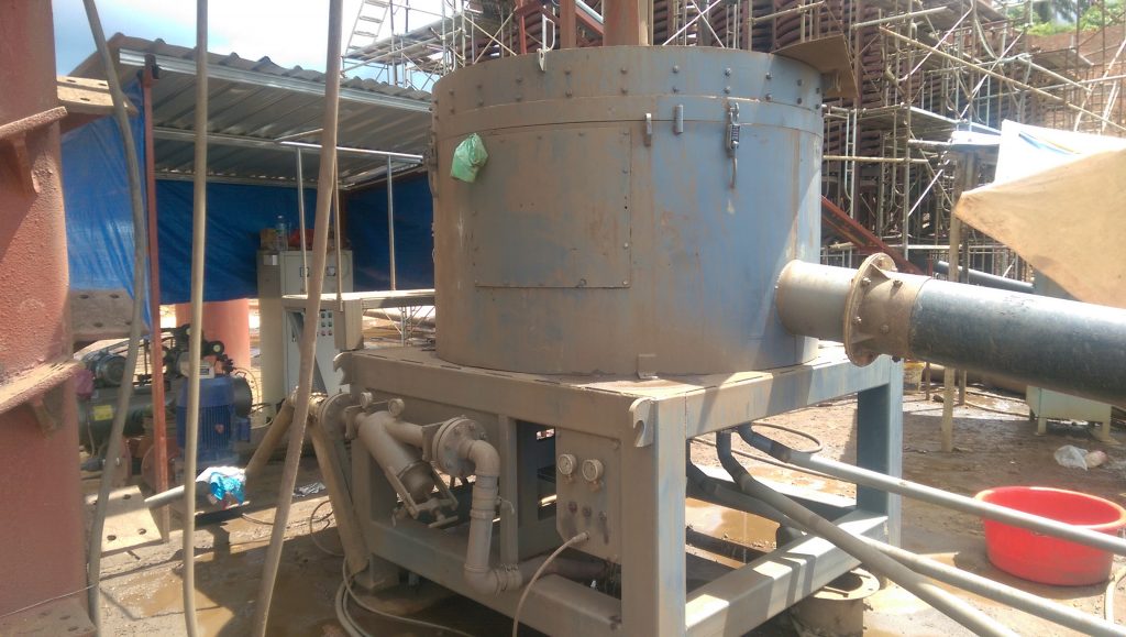 我們在遼寧本溪的赤鐵尾礦回收,客戶的尾礦品味13%的品味,顆粒度是-325目,是經過兩次球磨后的尾礦,顆粒度細。客戶采用了很多方法,幾乎用遍了很多的重選設備和磁選設備都是沒有辦法選起來的,了解到我們這種鐵尾礦的設備后比較謹慎的上了一臺,把礦料過了一邊,也就是選了一邊,把原來品味13%的尾礦選到了48%的品味,客戶非常高興,這種設備打破了細顆粒非磁性鐵礦的選礦壁壘。尾礦離心機