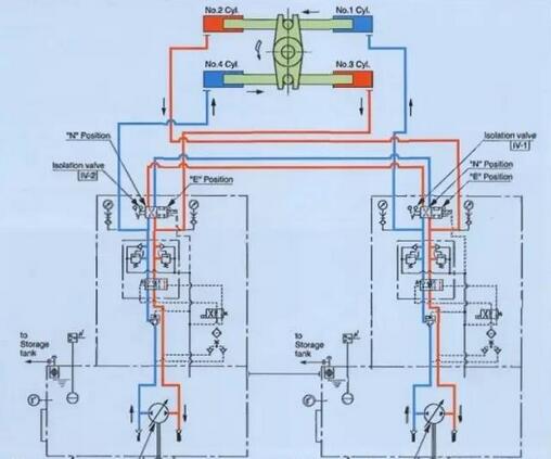 無論是哪種品牌的撞桿式舵機,其基本結構還是比較相似的,在這里我們以川崎生產的舵機進行舉例,來加深大家的印象,順便讓大家了解一下什么是閥控性,什么是泵控型舵機,簡而言之,閥控性是依靠換向閥來進行換向的舵機,大部份應用在相對較小的船舶上。
